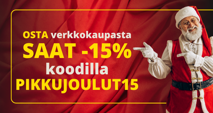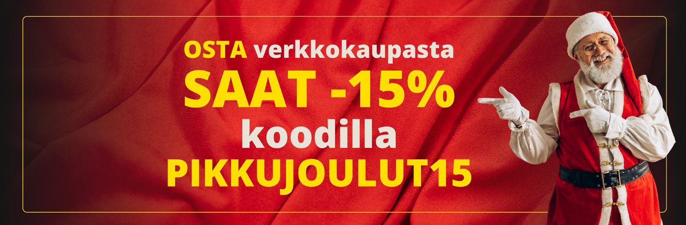 Etu koskee verkkokaupan Pikkujoulut-teemasivulla listattuja tuotteita ja on voimassa 31.12.2025 asti.