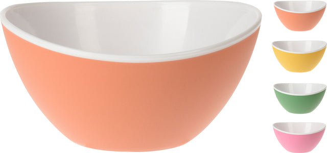 Kulho, jonka vetoisuus on noin 330 ml. Sisäpinta valkoinen, ulkopinta värillinen. Väreinä oranssi, keltainen, vihreä ja pinkki.