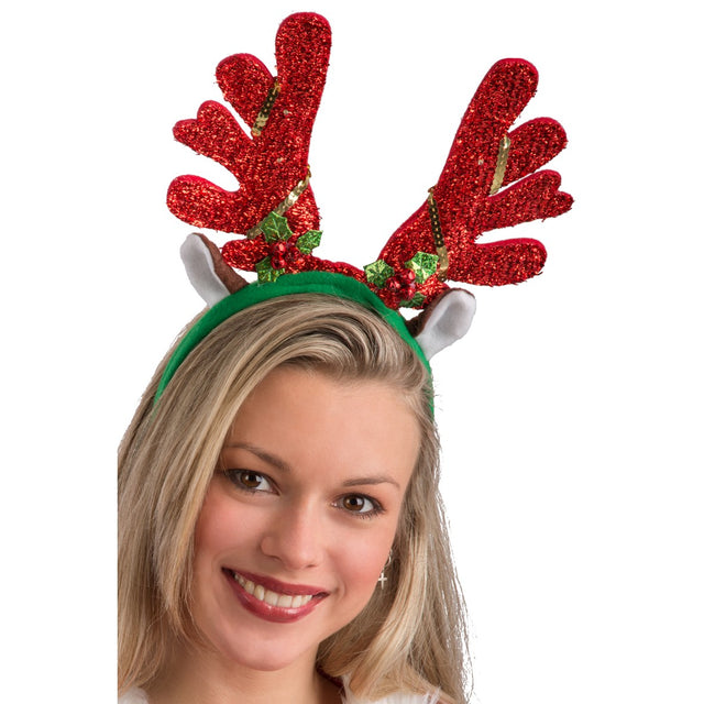Poronsarvissa pienet led-valot sekä paljetti ja kulkuskoristeita. Poron sarvet on etupuolelta päällystetty punaisella kiiltelevällä ohuella folionauhalla.