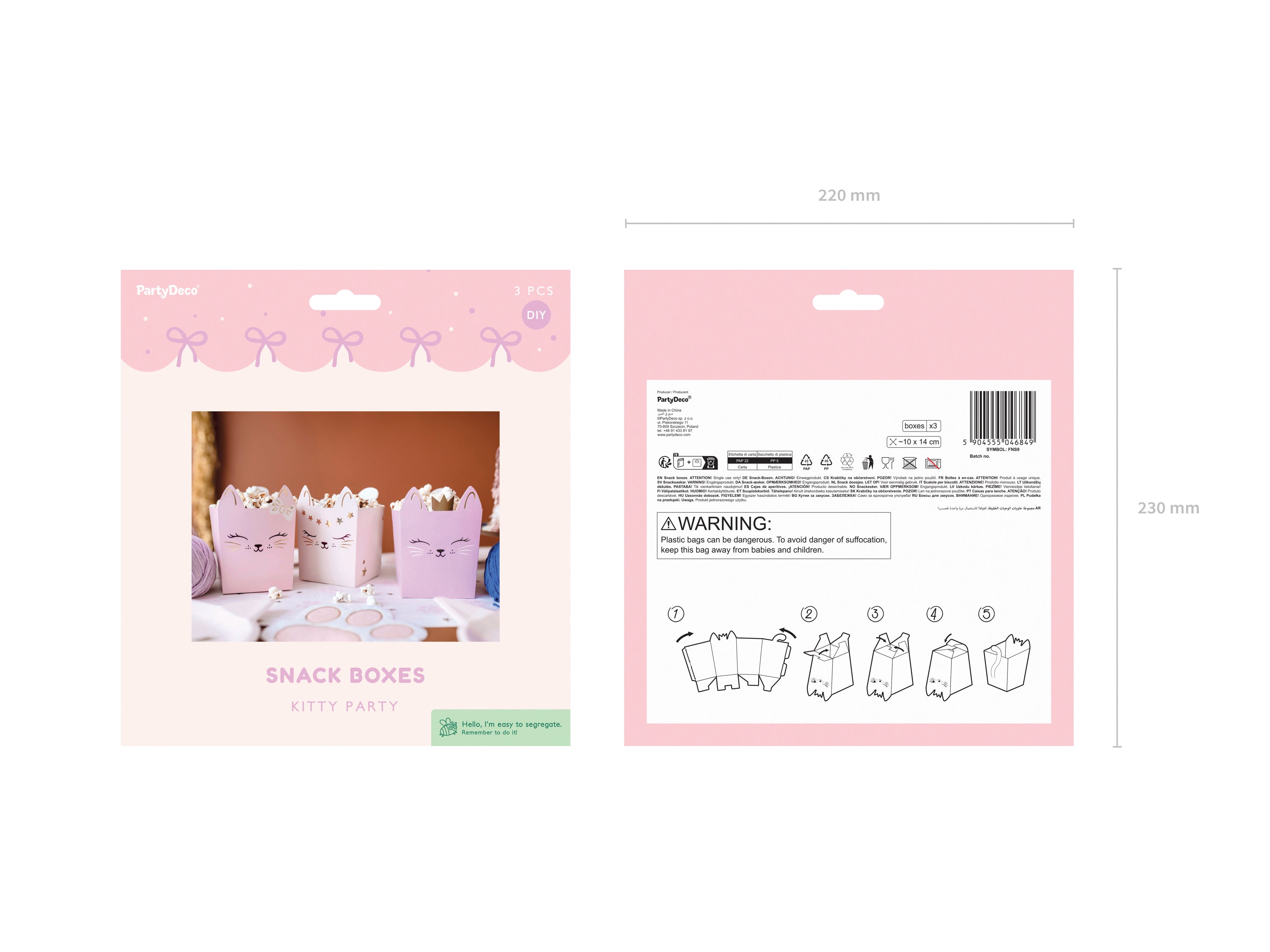 Suloinen kissa naksulaatikko. Tarjoile herkkuja naksulaatikoissa tai anna ystävillesi mahdollisuus kerätä oma herkkukori. 3 kpl/pkt