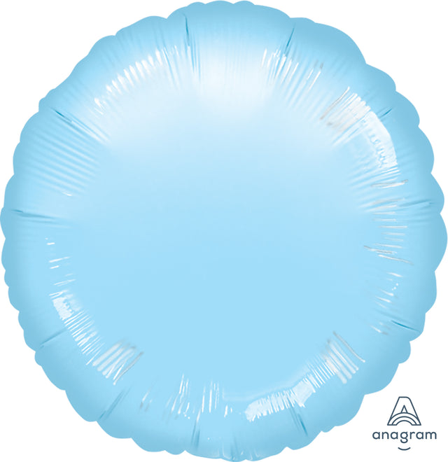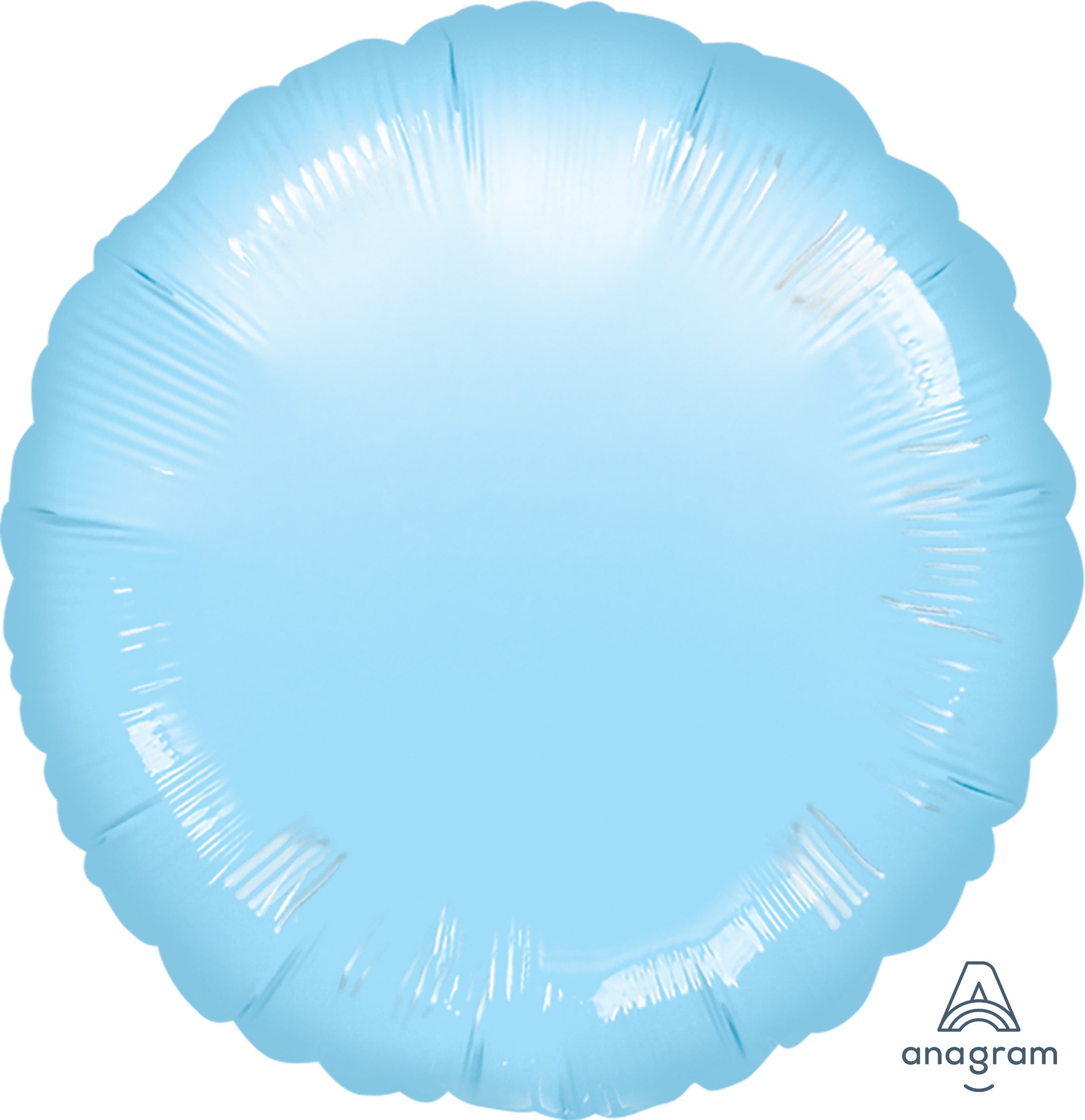 Vaaleansininen pyöreä foliopallo, jonka koko on noin 45 cm. Heliumilla täytettynä pysyy ilmassa noin viikon.
