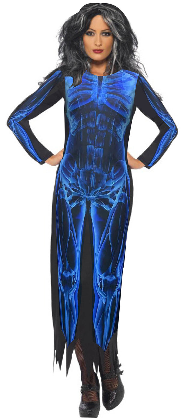 Luuranko aikuisten naamiaisasu L. Kaavussa on kuvattuna röntgenkuva luurangosta. Koko on naisten L (40/42).
