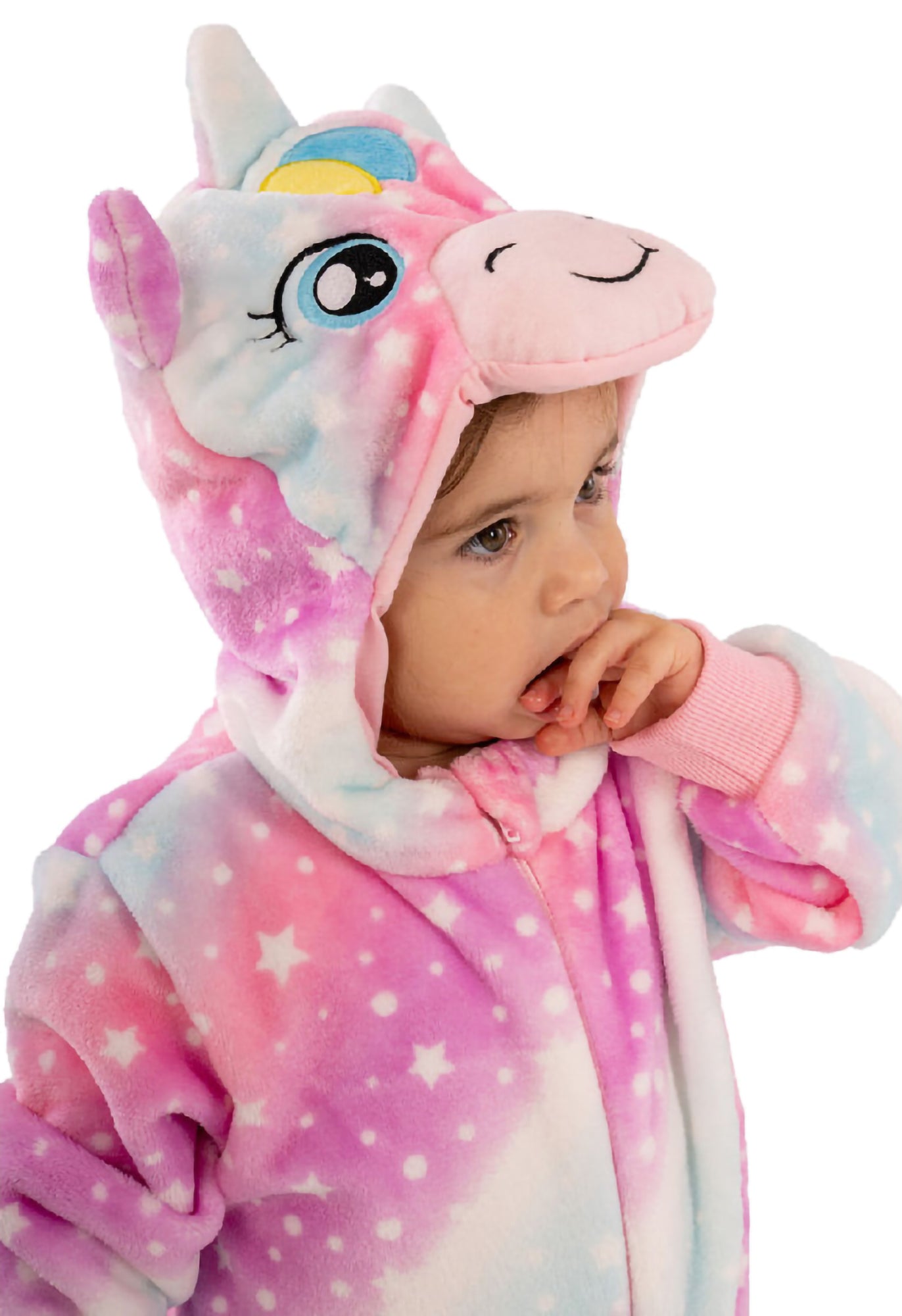 Taianomaiset seikkailut alkavat tästä! Yksisarvinen fleecehaalari kimaltelee mielikuvituksessa ja vie lapsen satumaailmaan, missä sateenkaaret ja seikkailut odottavat. Pehmeä fleece tuntuu ihanalta päällä ja lämmittää ihanasti. Hupussa on suloiset korvat ja yksisarvisen sarvi, jotka tekevät asusta vastustamattoman ihastuttavan. Vetoketju helpottaa pukemista ja riisumista, joten taikaretket voivat alkaa hetkessä. Saatavilla myös koko 102 cm – täydellinen unelmien haalari pienelle taikavoimien mestarille!