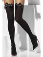 "Yli polven"-malliset, yhden koon sukat (EU 34-42), materiaaliltaan 100 % nailonia. Yläosassa vahvempi resori, jonka avulla sukat pysyvät ylhäällä, ei silikonia. Suloiset mustat rusetit koristavat sukkia. Sukkien pituus pakkauksessa on noin 64 cm.
