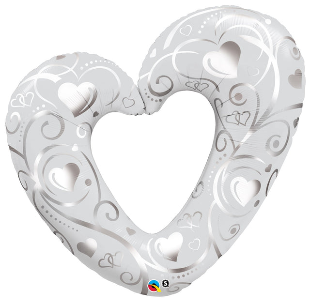 Valkoinen sydän, muotofoliopallo. Koko 42" noin. 105 cm. Voidaan täyttää Helium-ilmapallokaasulla. Foliopallossa on automaattiventtiili, joka mahdollistaa myös pallon tyhjentämisen ja täyttämisen uudelleen.