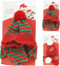 Koossa S hattu ja huivi ovat puna-valkoraidallisia. Koossa L hattu ja huivi ovat puna-vihreäraidalliset.