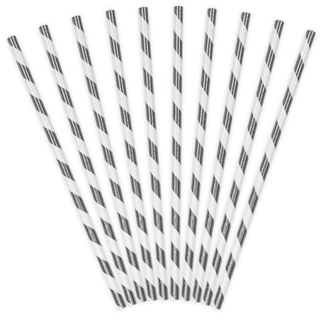 Pahvijuomapilli hopeanväriset raidat 10 kpl/pkt