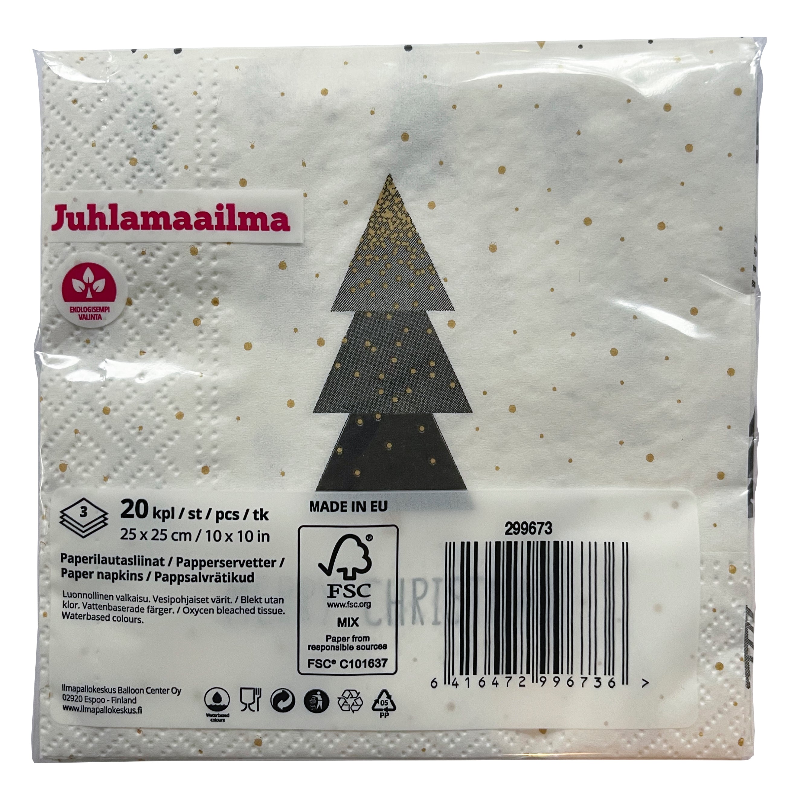 Pakkaus sisältää 20 kpl paperilautasliinoja. Lautasliinan koko on avattuna 25x25 cm.
