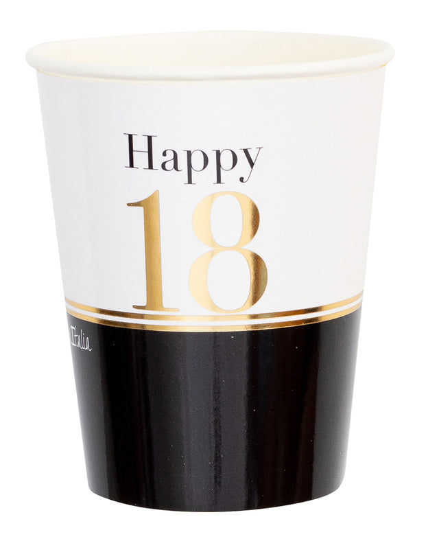 Happy 18 juhlava pahvimuki 8 kpl/pkt
