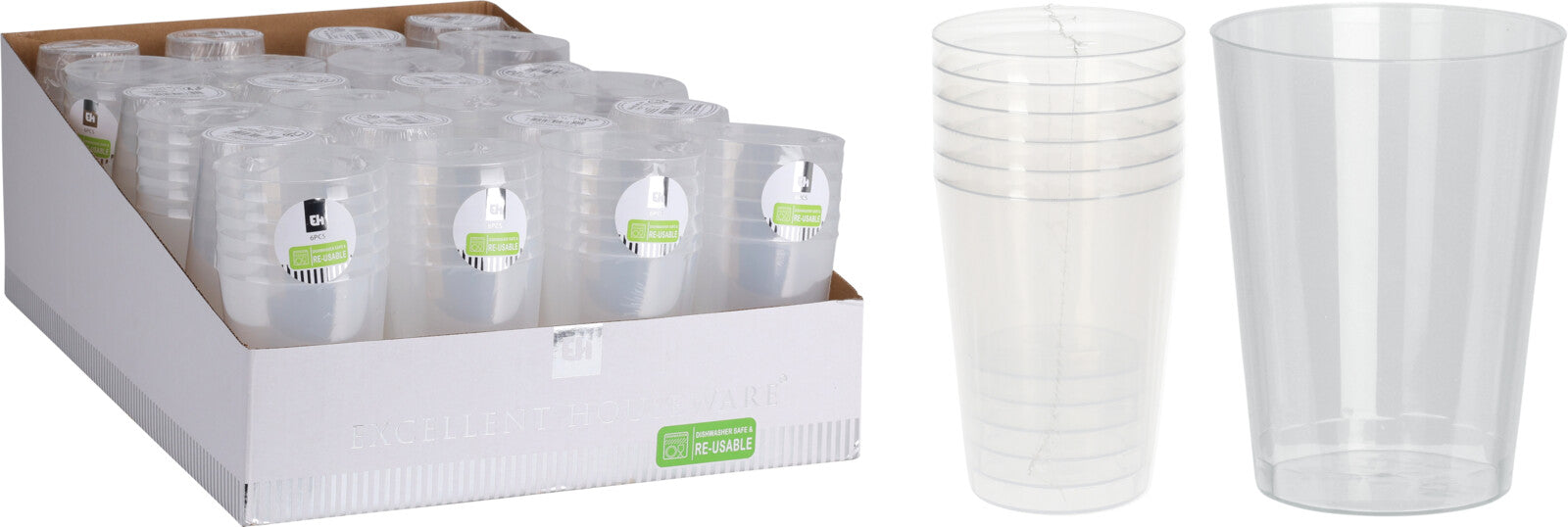 Kirkkaat juomalasit 6 kpl/pkt. Tilavuus 280 ml. Tuote on konepestävä.
