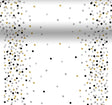 Valkoinen kaitaliina mustilla, kullan -ja hopeanvärisillä pilkuilla. Rullassa on 4,8 metriä 40 cm leveää liinaa. Kestävä kertakäyttöinen liina on Dunin Dunicel -materiaalia. Materiaali on pehmeää, sileää ja hyvin laskeutuvaa.