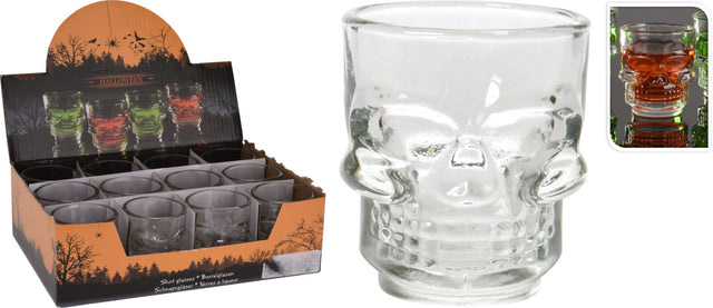 Pääkallon näköinen shottilasi, vetoisuus 40 ml.