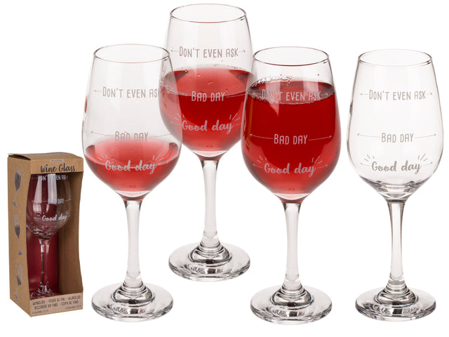 Lasissa mitta-asteikko päivän tunnelman ja viinin määrän mukaan: