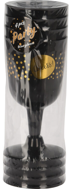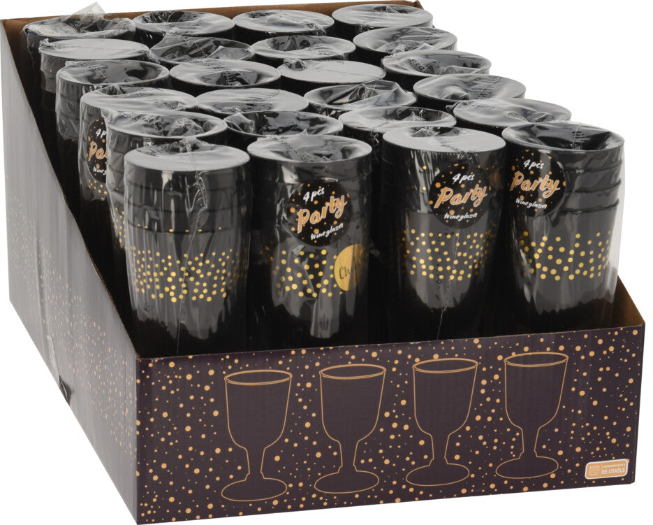 Muovinen viinilasi kulta musta 4 kpl/pkt