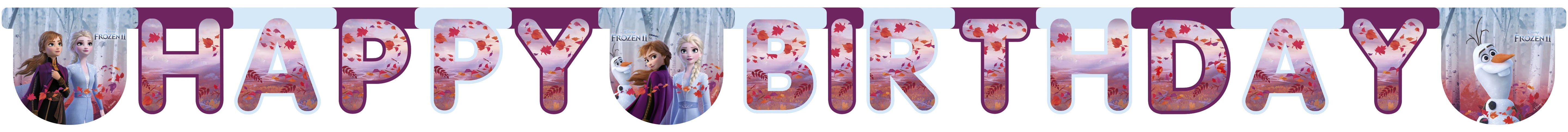 Frozen 2 Happy Birthday -kirjainnauha. Koristeen korkeus on noin 16 cm ja pituus 2 m.