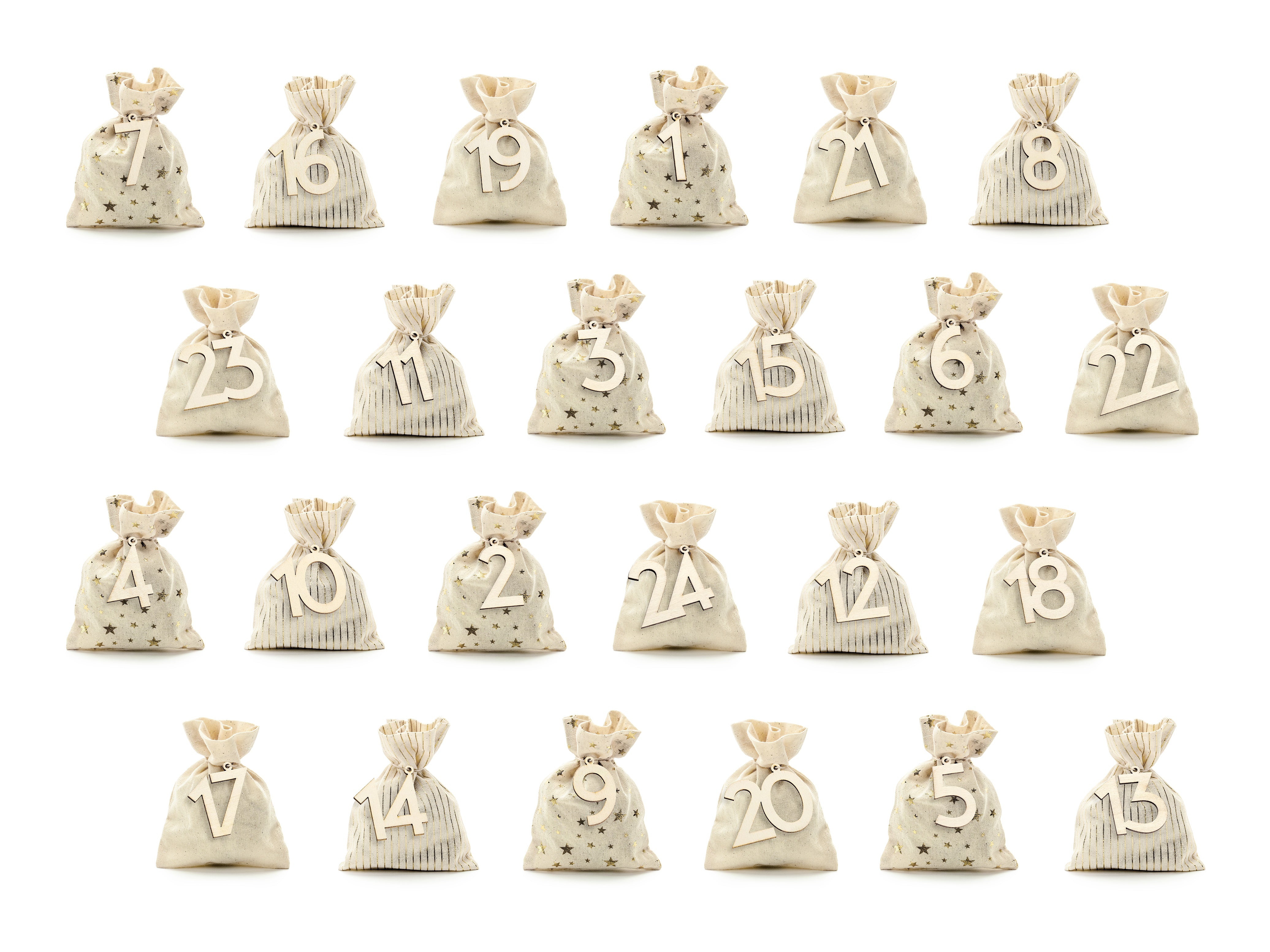 - 24 puuvillaista pussukkaa ( 3 erilaista, 8 kpl/malli)