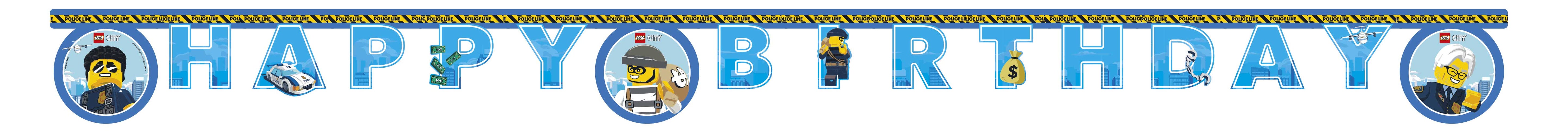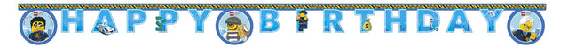 FSC-sertifioidusta paperista valmistettu Lego City happy birthday kirjainnauha hienoksi koristeeksi syntymäpäiväjuhliin.