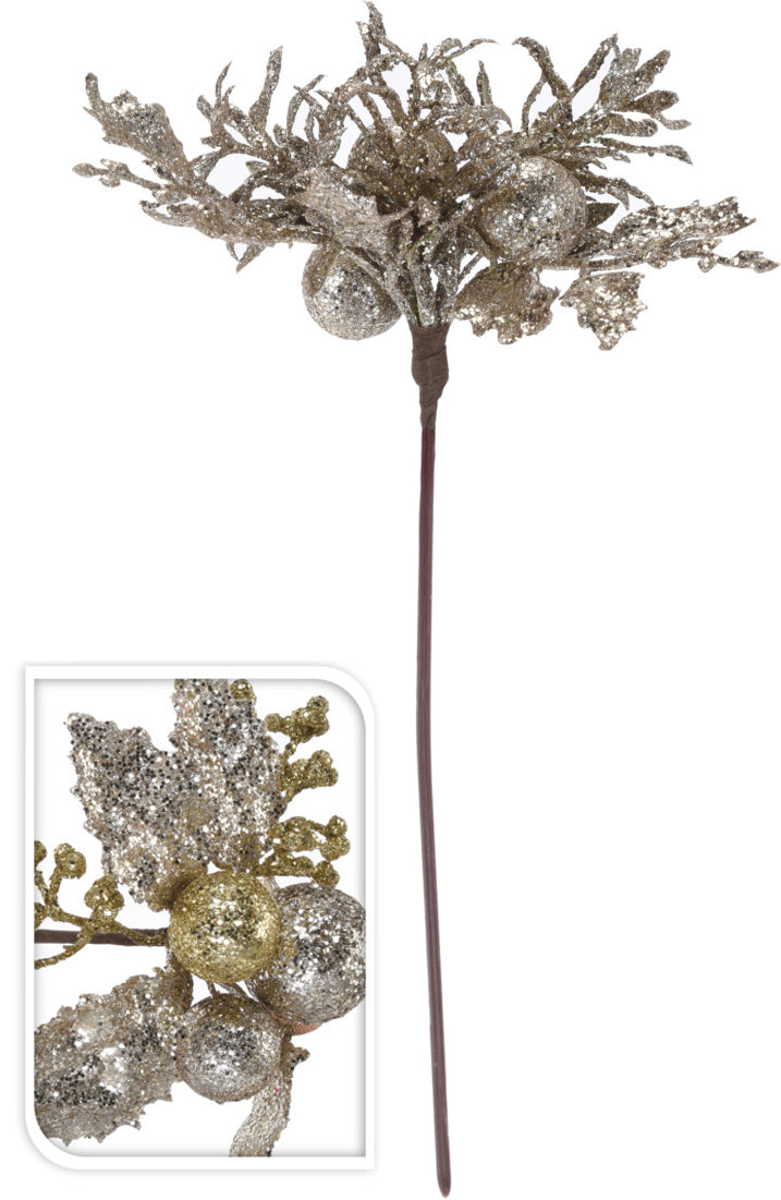 Shampanjan värisen kimallekoristeen koko noin 14 x 6 x 20cm