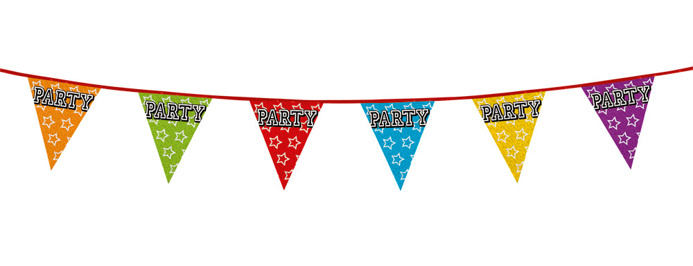 Holograafinen viirinauha, jossa teksti Party. Vaihtoehtoisena myös Holograafinen viirinauha, jossa numero tai teksti Happy Birthday.