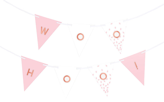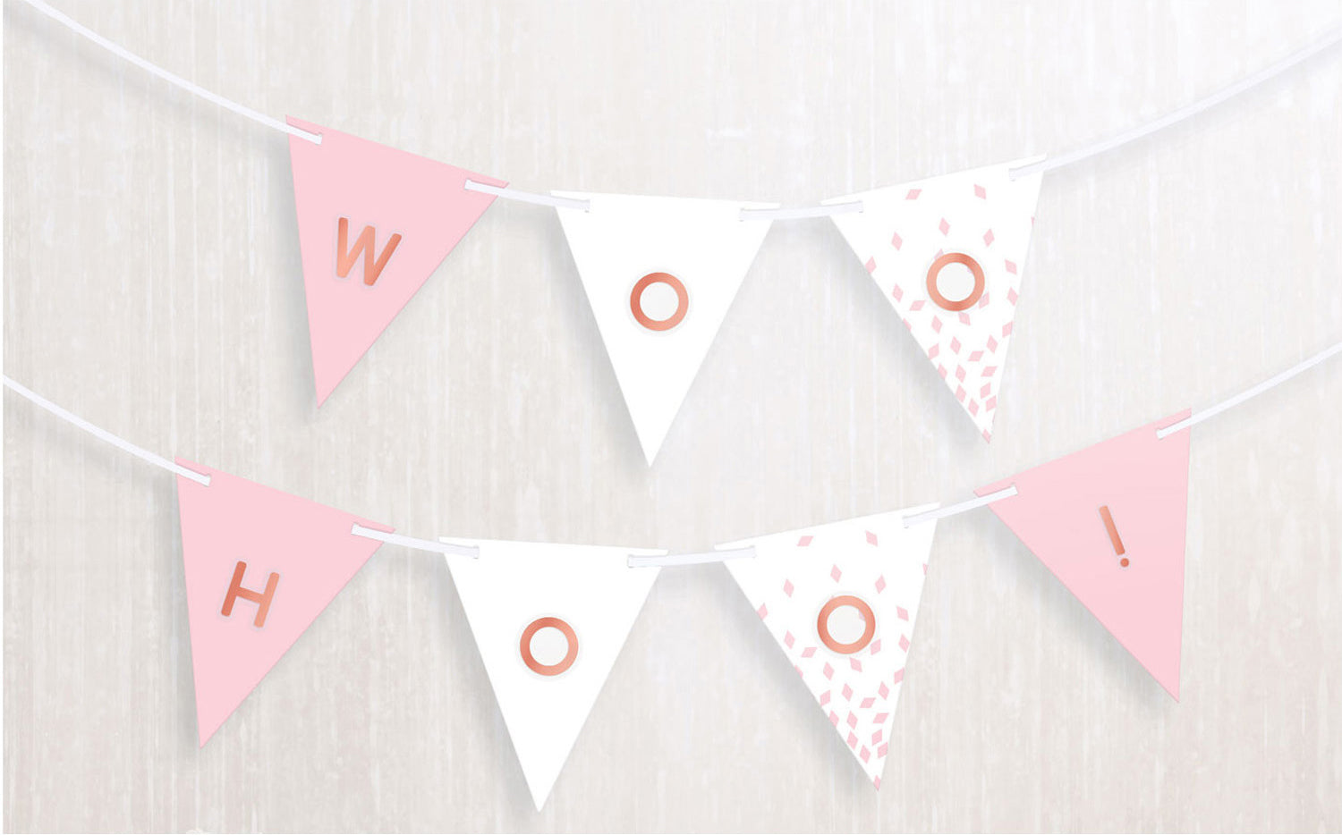 Ruusukullanvärinen viirinauha joka on yksilöitävissä vaihtamalla viirien järjestystä haluamasi mukaan