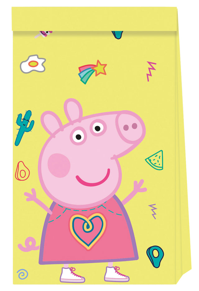 Pipsa Possu kaverilahjapussi tekee juhlista entistä iloisemmat! Näihin värikkäisiin paperipusseihin on helppo pakata pienet yllätyslahjat, makeiset tai kiitoslahjat juhlavieraille. Hauska Pipsa-kuvitus hurmaa lapset ja viimeistelee juhlateeman. Pussit ovat käteviä, ympäristöystävällisiä ja sopivat täydellisesti syntymäpäiville ja muihin lastenjuhliin. Pakkauksessa on 4 paperipussia.
