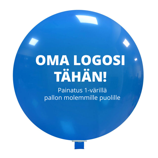 Hinta sisältää 120 cm jättikumipallot 1-väripainettuina pallon molemmille puolille. Kummallekin puolelle tulee sama painatus. Minimitilausmäärä on 5 kpl.