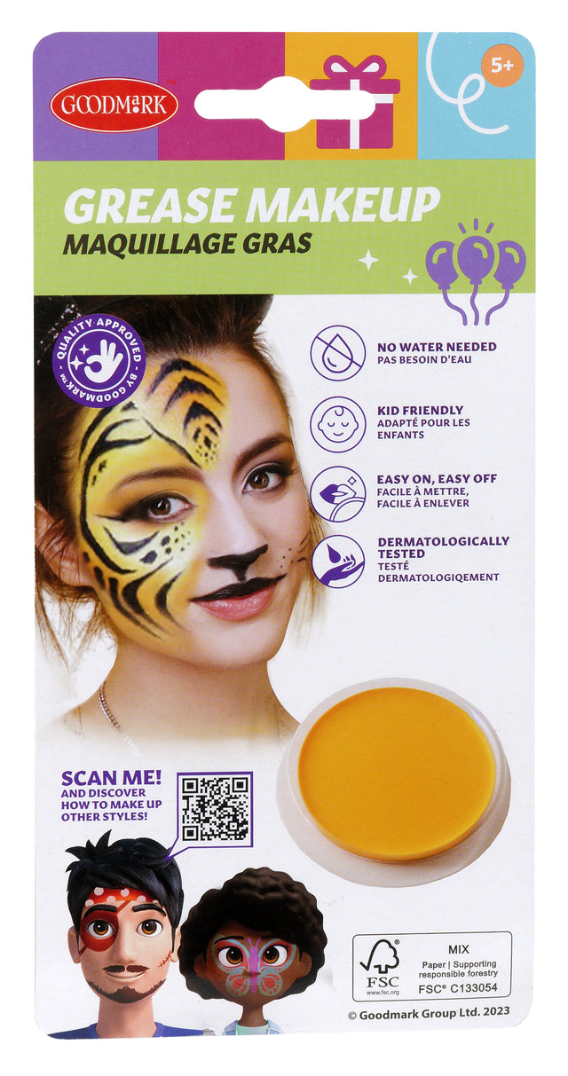 Kasvoväri keltainen 14 g. Helppo levittää sienellä tai sormella.