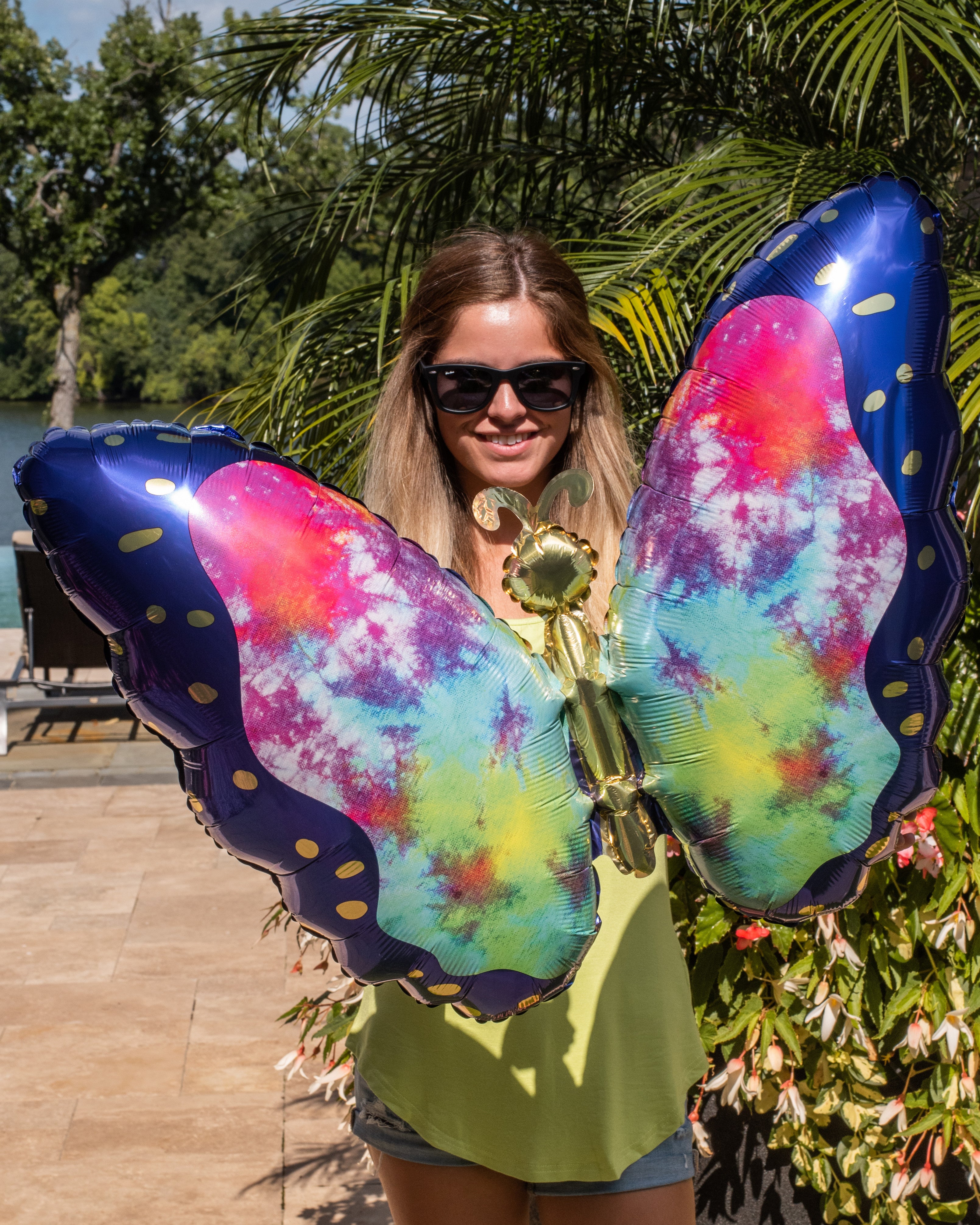 Perhonen muotofoliopallo. Pallossa on kaunis kuin batiikkivärjätty pinta. Pallo voidaan täyttää Helium -ilmapallokaasulla. Pallon koko on täytettynä noin 66x53 cm. Pallossa on automaattiventtiili, jolloin pallo on mahdollista tyhjentää ja täyttää tarvittaessa uudelleen.