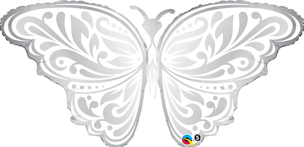 Valkoinen perhonen muotofoliopallo. Voidaan täyttää Helium-ilmapallokaasulla. Foliopallossa on automaattiventtiili, joka mahdollistaa myös pallon tyhjentämisen ja täyttämisen uudelleen.