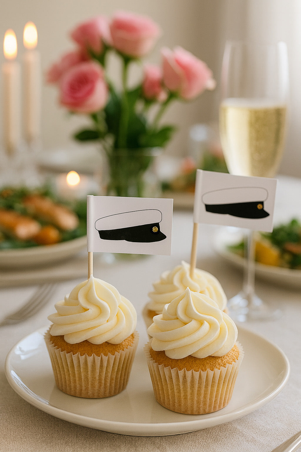 Ylioppilaslakki cocktailtikut, 24 kpl paketissa. Tikun pituus on 7 cm ja lipun koko on 3,5 x 2,5 cm.