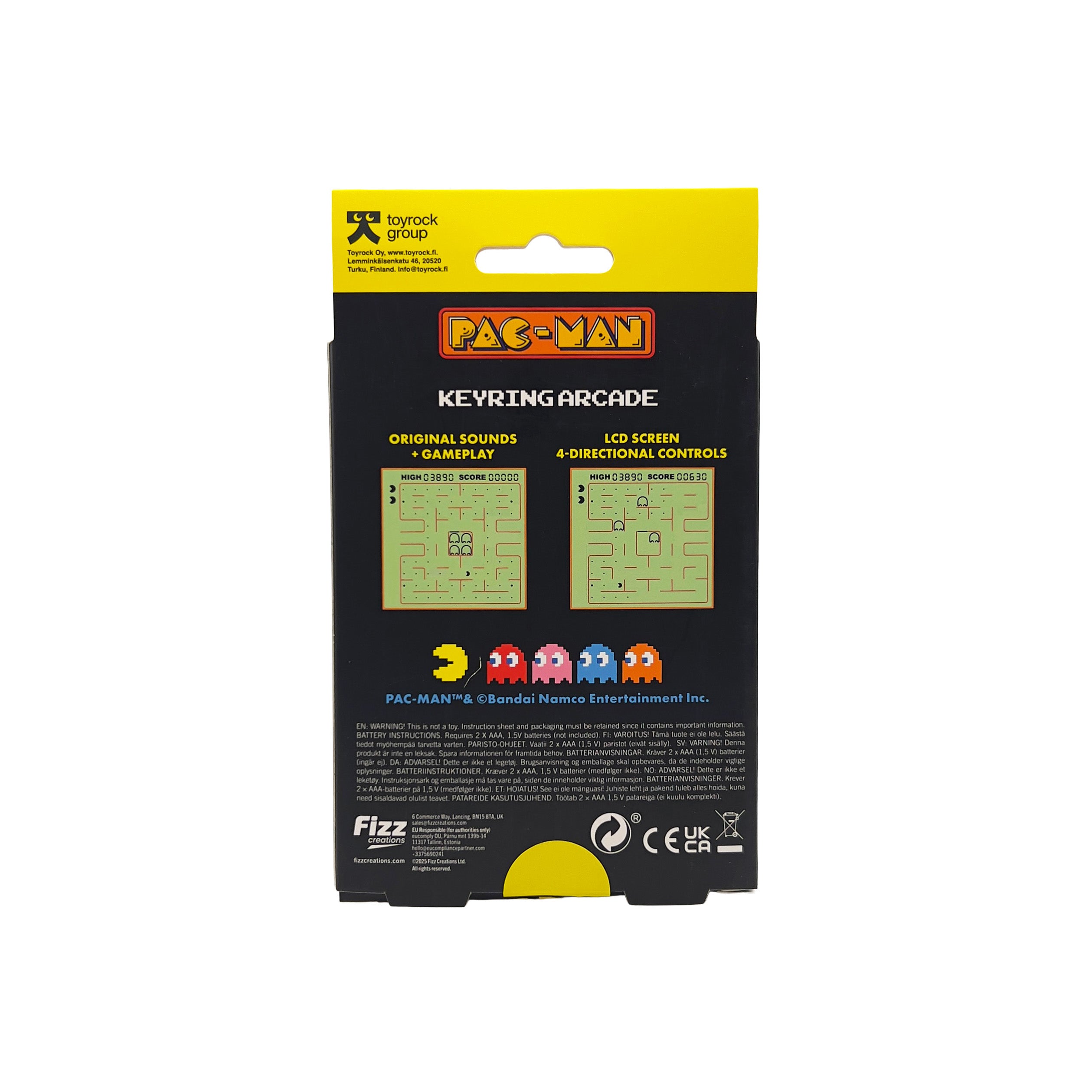 Pelaa nostalgista Pac-Man-peliä missä tahansa tällä Pac-Man-avaimenperällä! Sisältää alkuperäiset tasot ja äänet sekä aidot pelihallityyliset painikkeet. Mustavalkoinen näyttö, eri vaikeustasoja ja koukuttavaa pelattavaa. Paristot 2xAAA eivät sis. 6+