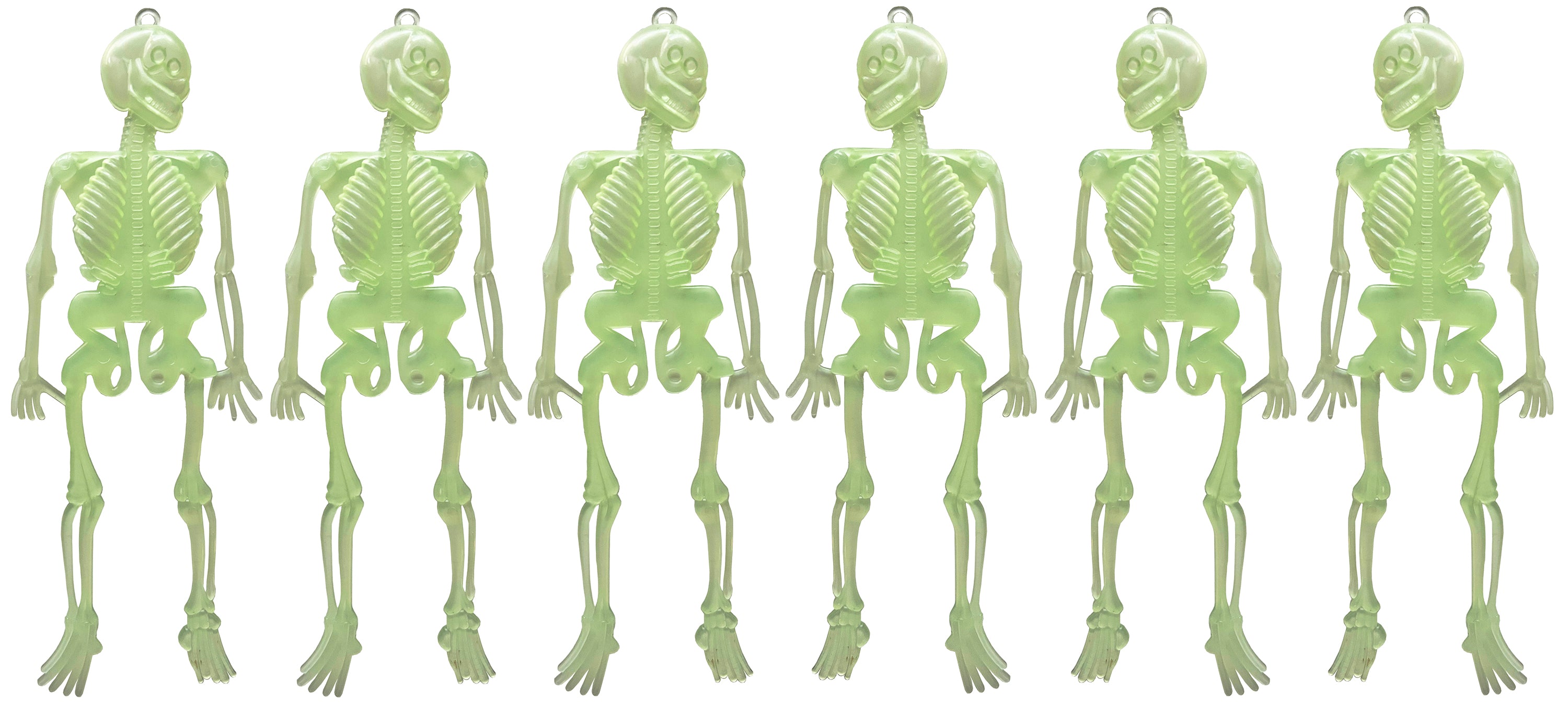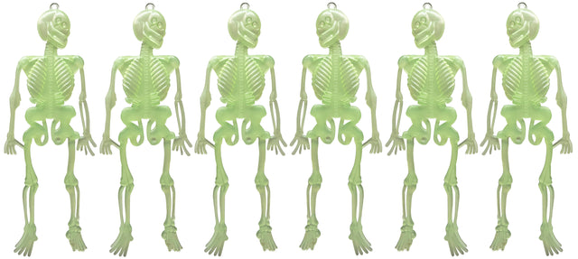 Nämä pimeässä hohtavat luurangot tuovat jännittävää loistetta Halloween-juhliin! Pussi sisältää 6 kappaletta luurankoja, joiden korkeus on noin 14,5 cm. Kun valot sammuvat, luurangot hohtavat pimeässä ja luovat karmivan tunnelman – täydellinen yksityiskohta juhlasomistukseen, karkki vai kepponen -kierrokselle tai pimeässä hohtavaan koristeluun. Kevyt muovimateriaali tekee niistä helppoja ripustaa seinälle, ovelle, ikkunaan tai asetella pöydälle muiden kauhuelementtien joukkoon. Monikäyttöinen koristelupaketti, jolla luot helposti lisää pelottavaa fiilistä!