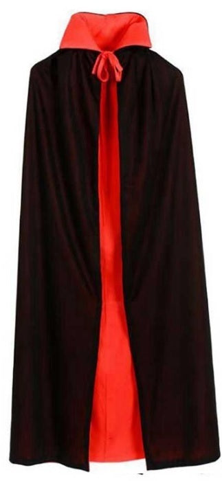 Quickly get ready for the Halloween party with this reversible BLACK cape with RED collar! This spooky unisex LUXE cape for ADULTS comes in a black polyester with a red collar. You can reverse it so that you have RED cape with a BLACK collar too! One size fits most, for adults. An indispensable dress-up item for any party!!!