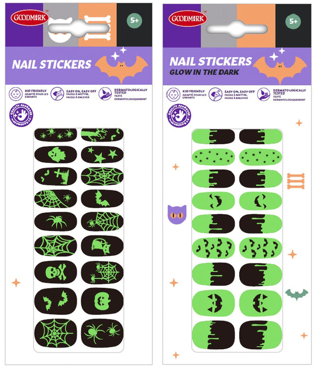 Koristele kyntesi karmivan upeiksi näillä pimeässä hohtavilla Halloween-kynsitarroilla! Pakkaus sisältää arkin, jossa on 20 koko kynttä peittävää tarraa kahdessa erilaisessa kuosissa. Tarrat on helppo kiinnittää ilman erityisiä välineitä tai kuivumisaikaa – saat näyttävän manikyyrin valmiiksi muutamassa minuutissa. Kun valot sammuvat, kynnet loistavat pimeässä ja täydentävät asusi hyytävän tyylikkäästi. Täydellinen viimeinen silaus Halloween-juhliin, naamiaisiin tai teemabileisiin.