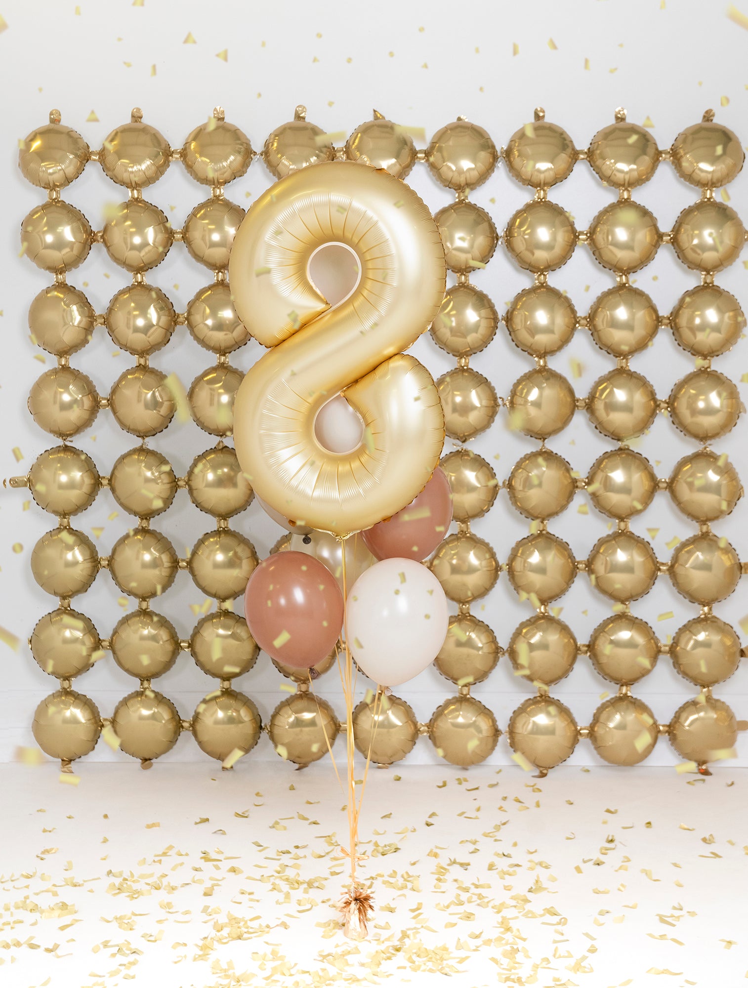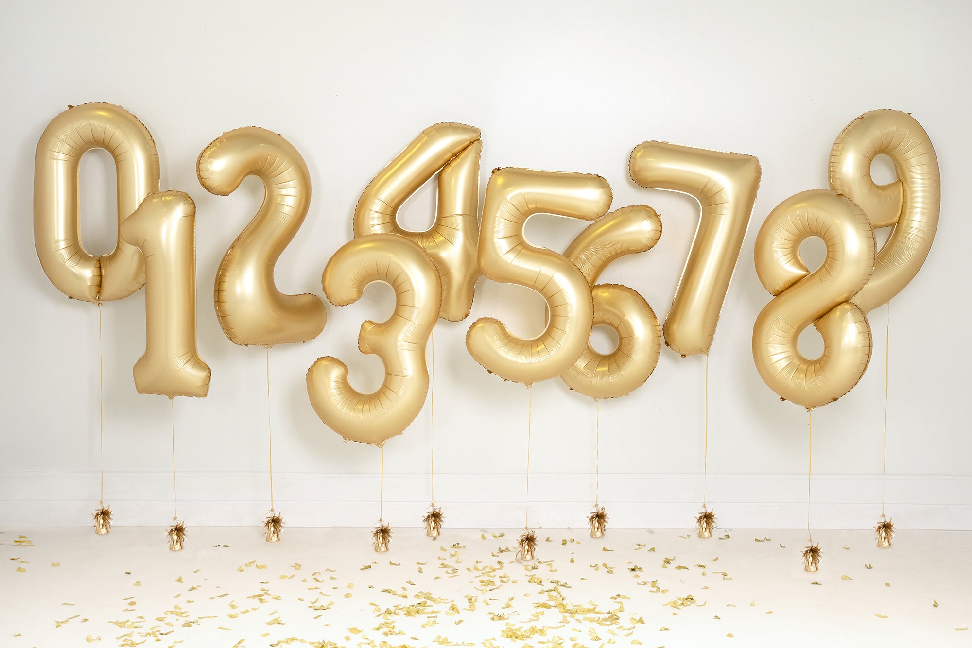 Valkokultaan vivahtava, satiininhohteinen kullanvärinen numerofoliopallo. Voidaan täyttää joko ilmalla tai ilmapalloheliumilla. Pallossa on ripustuksen helpottamiseksi ripustusaukot.