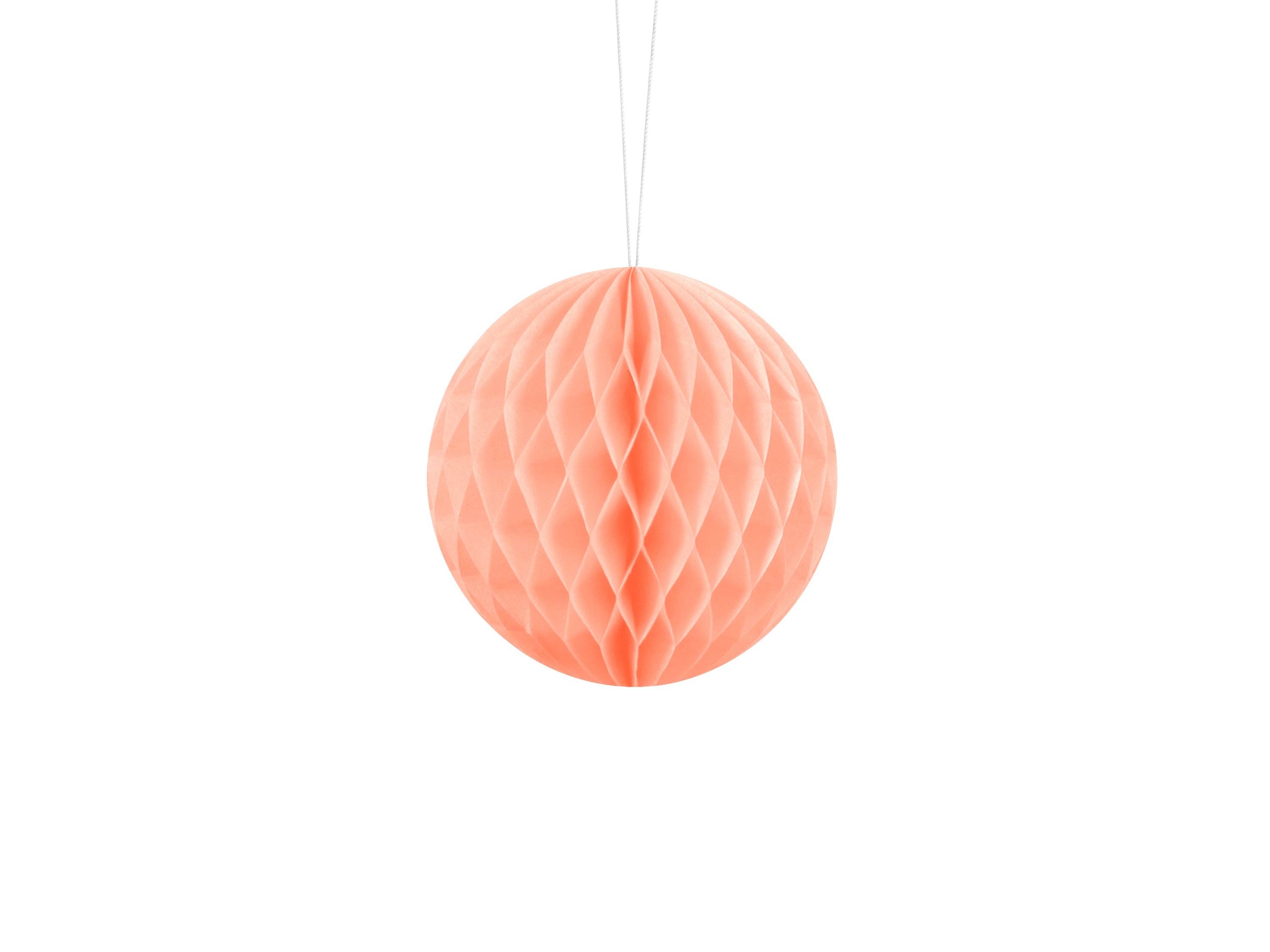Lisää juhliin pehmeää ja lämmintä tunnelmaa tällä hunajakenno paperikoristeella. Koriste on vaalean persikan värinen ja halkaisijaltaan 10 cm, joten se sopii kauniisti ripustettavaksi yksittäin tai ryhmässä useamman värin kanssa. Hunajakenno-muoto avautuu kolmiulotteisesti, luoden näyttävän mutta kevyen ilmeen. Valmistettu 98 % kreppipaperista ja 2 % puuvillasta, joten se on ekologinen ja helposti kierrätettävä. Sopii mainiosti syntymäpäiville, häihin, baby showereihin ja kodin sisustukseen.