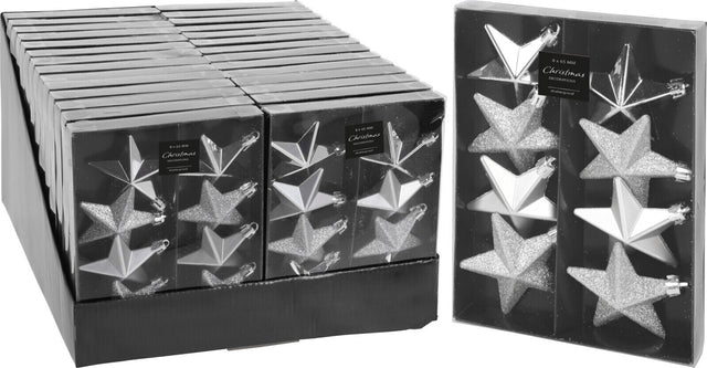Tähti joulukuusen koriste hopeanvärinen 8 kpl/pkt