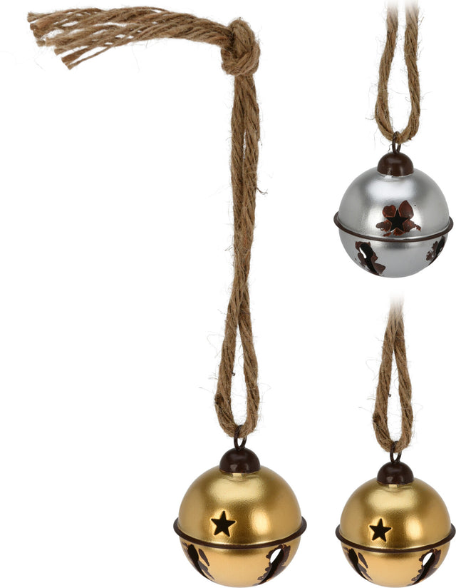 Rustiikkinen kulkunen juuttinarussa. Metallisen kulkusen koko n. 6 x 6 cm. 2 värivaihtoehtoa, kultainen ja hopea. Hinta on yhden kappaleen hinta.