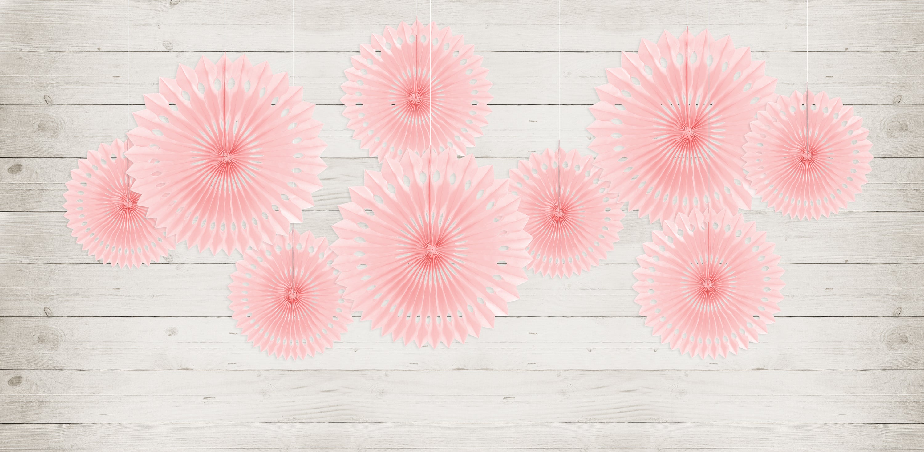 Raikkaan vaaleanpunaiset paperiviuhkakoristeet tuovat juhliin iloista ja pirteää tunnelmaa. Sopii loistavasti lastenjuhliin, syntymäpäiville, ystävänpäivään ja muihin iloisiin tilaisuuksiin. Viuhkojen halkaisija 20–30 cm, pakkauksessa 3 kpl.