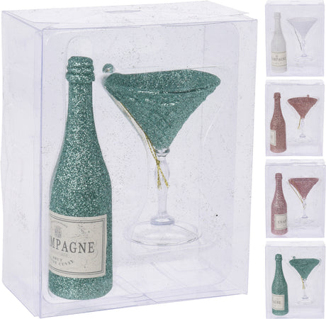 Ripustettava koriste shampanjapullo ja lasi 1 kpl 4 eri värivaihtoehtoa