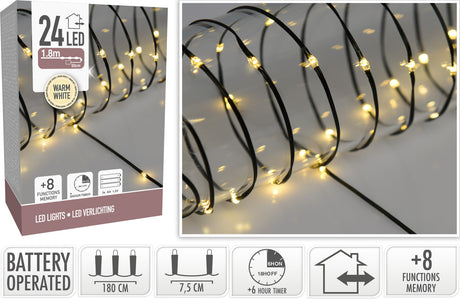 LED-valonauha musta 24 ledia lämmin valkoinen paristokäyttöinen