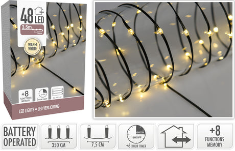 LED-valonauha musta 48 ledia lämmin valkoinen paristokäyttöinen