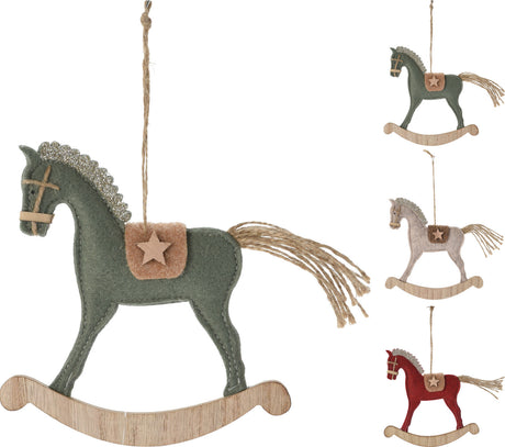 Joulukuusenkoriste keinuhevonen lajitelmatuote, 3 erilaista