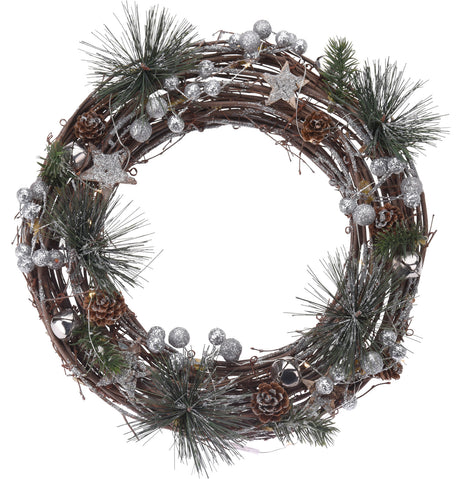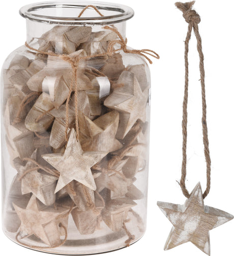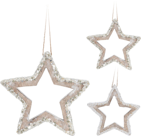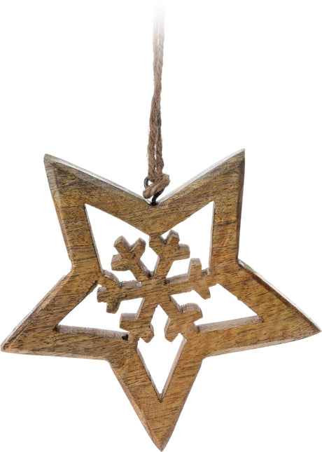 Tähti ja lumihiutale puinen ripustettava joulukoriste 15cm