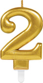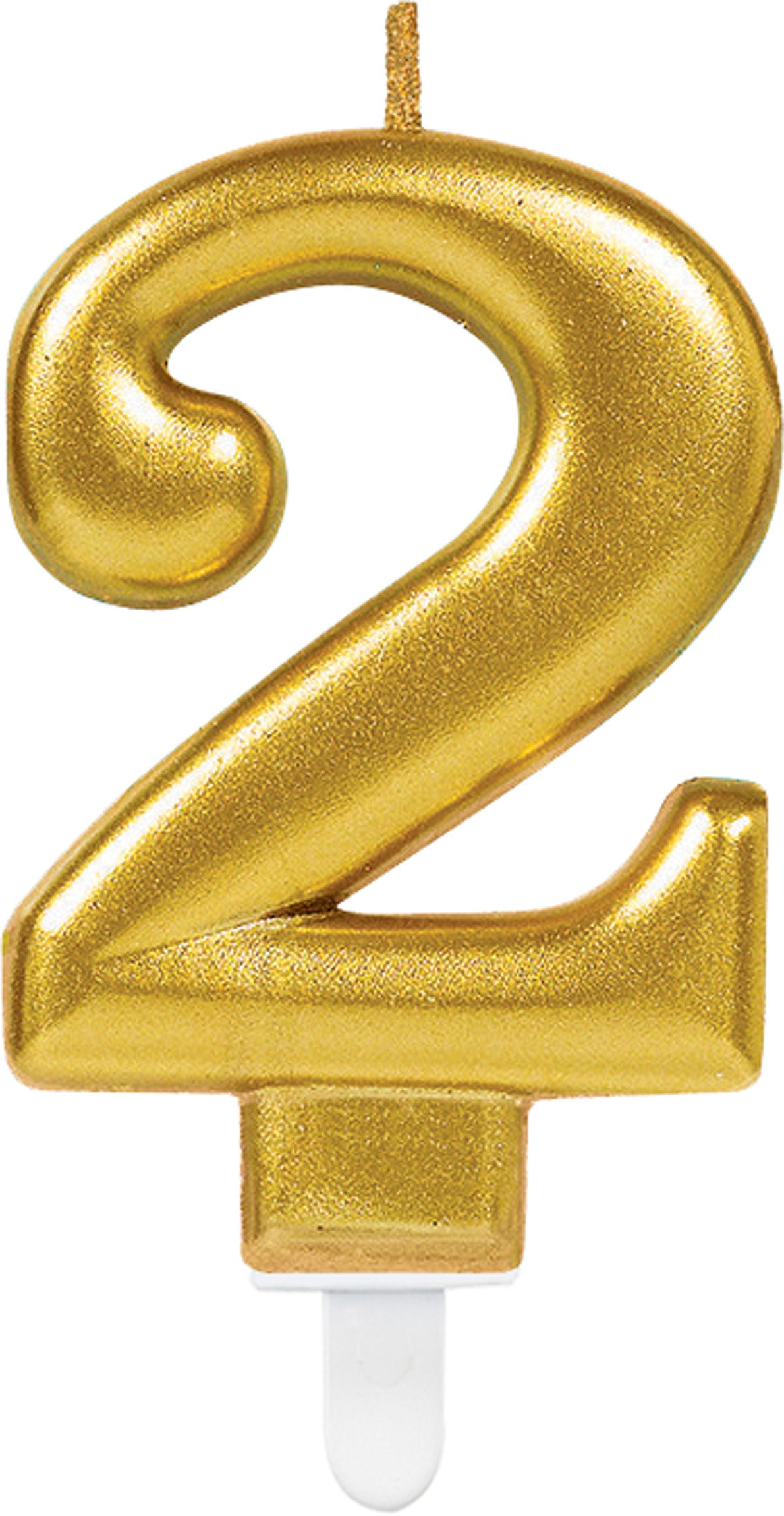 Kullanvärinen numeron 2 muotoinen kynttilä. Pakkaus sisältää yhden kynttilän. Viimeistele syntymäpäiväkakku tyylikkäillä metallinhohtoisilla numerokynttilöillä.