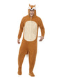 Rusehtavan sävyinen kettuhaalari, pinta pehmeältä tuntuvaa huopamaista tekstiiliä. Haalarin edessä vetoketju, takana häntä. Hupussa on pehmustettu ketun kuono korvat ja silmät. Lahkeessa on kengän päälle tuleva osa, jalan alle tuleva kuminauha pitää haalarin paikoillaan.