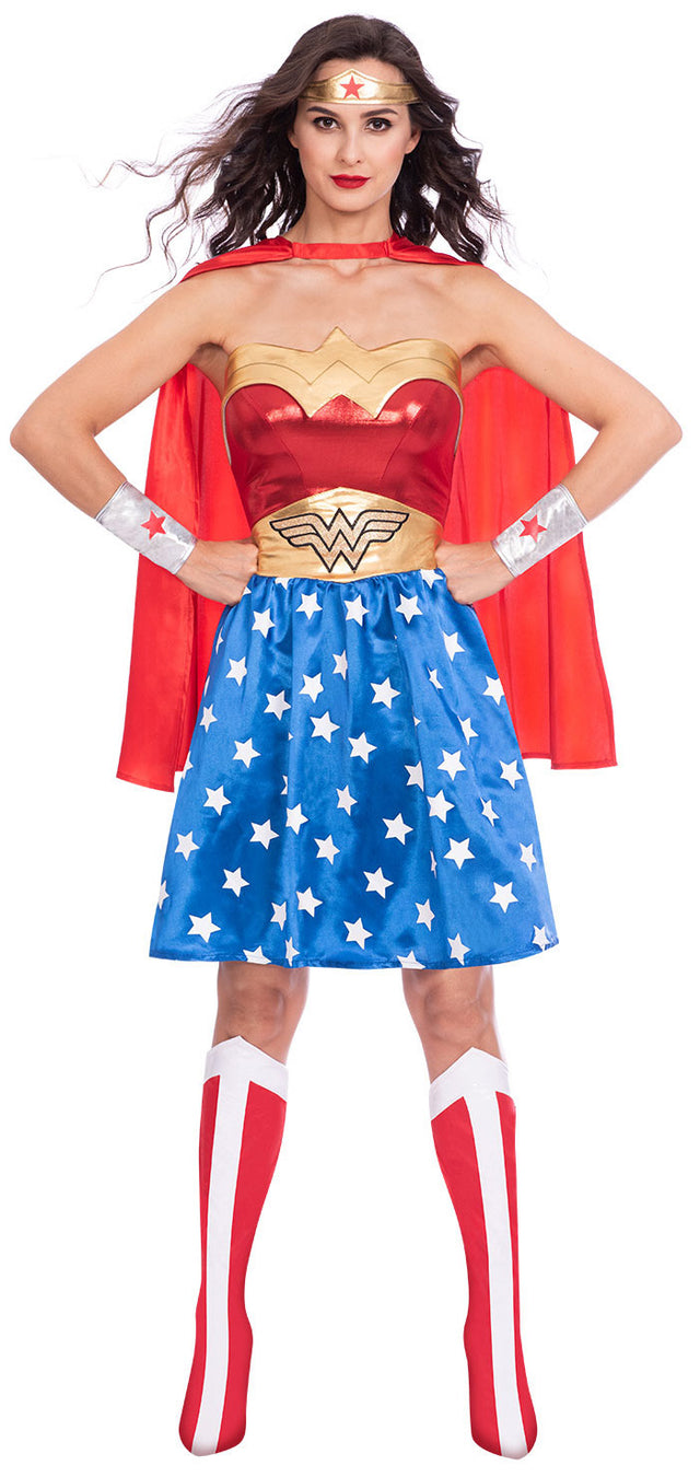 Wonder Woman asukokonaisuus aikuisille. Settiin sisältyy hame, viitta, säärystimet, rannekkeet ja otsanauha.