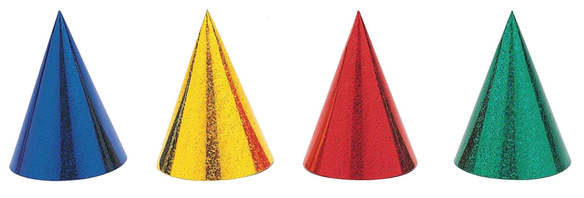Paketissa 8 kpl kimaltavia pahvihattuja. Hattujen värit ovat kultainen, vihreä, sininen ja punainen. Jokaista väriä on 2 kappaletta.
